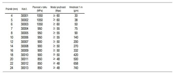 Vyrábí se čedičová výztuž o průměru 4 mm až 24 mm, délce 3 m do návinu 50 a 100 m