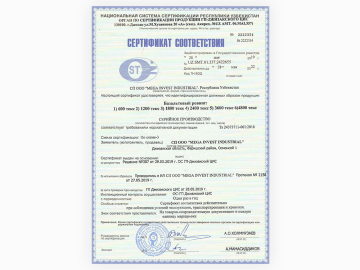 Po zahájení činnosti v roce 2015 v okrese Farish regionu Djizak (Republika Uzbekistán) pokračujeme v rozvoji výroby, abychom zlepšili kvalitu našich produktů a uvedli na světový trh materiály nové generace.